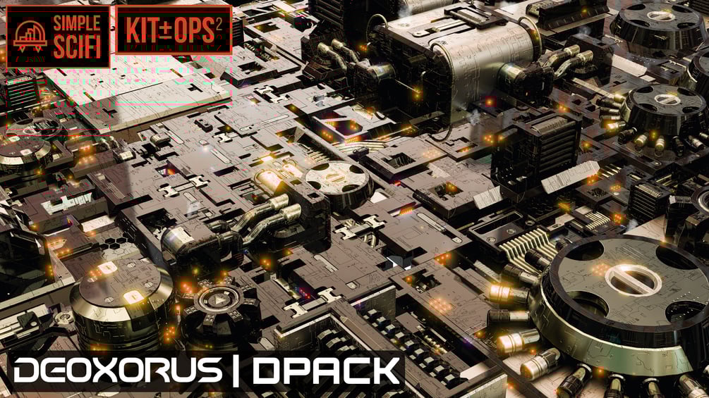 DPACK DEOXORUS is a collection of unique sci fi objects. They can be used for creating full 32-bit displacement maps and instanced geometry to create a variety of models, from distant cities, to spaceship details, to sci-fi objects and more.