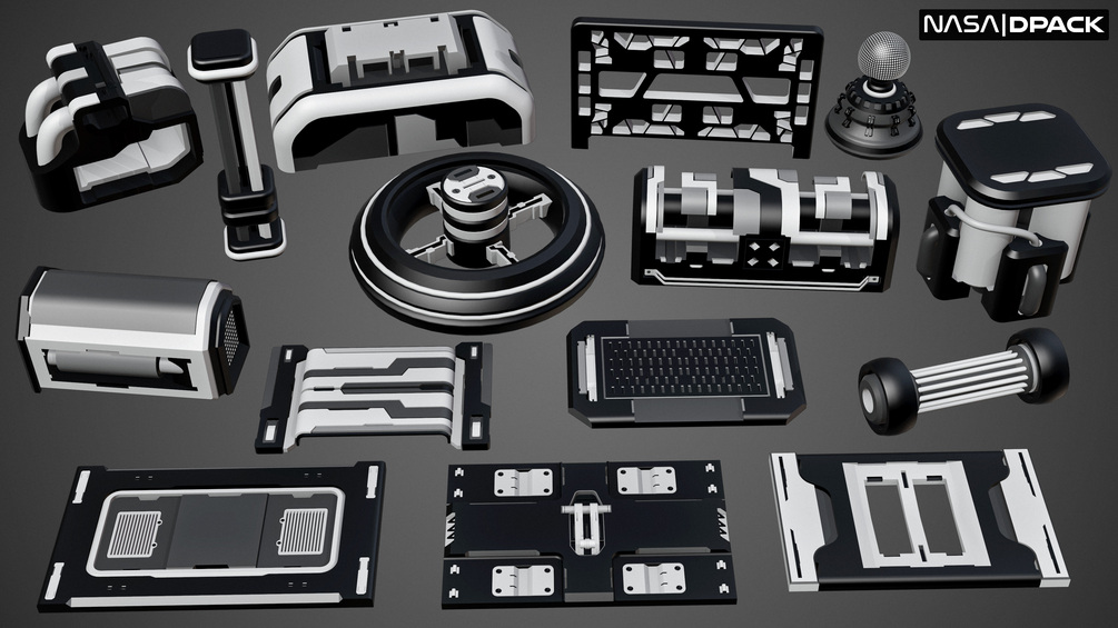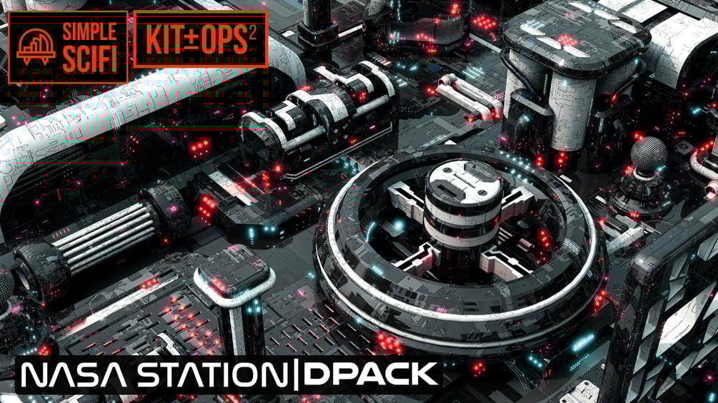 DPACK "NASA STATION" is a collection of unique sci fi objects. They can be used for creating full 32-bit displacement maps and instanced geometry to create a variety of models, from distant cities, to spaceship details, to sci-fi objects and more.