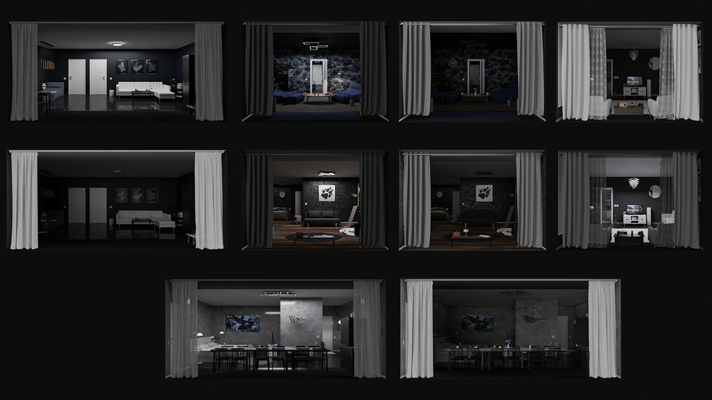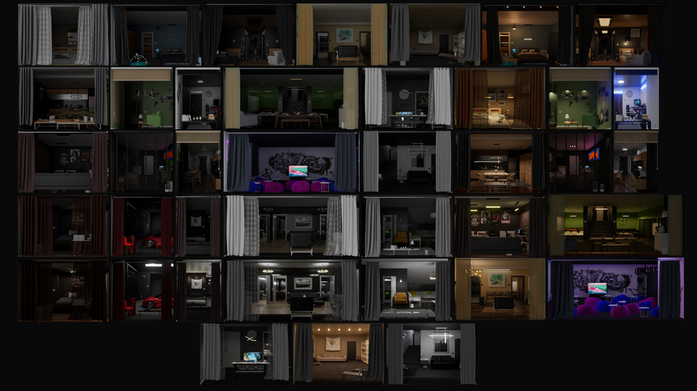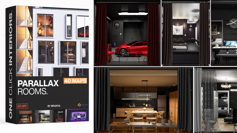 It works perfect with Kit Ops (FREE or PRO) in Blender. You can easily add many virtual 3D interiors to your Archviz 3D exterior scenes in Blender. It works both in EEVEE and Cycles and is also customizable as well. You can duplicate, scale and place these single plane optical illusions directly on your buildings to create the effect of adding interior rooms to your scene.