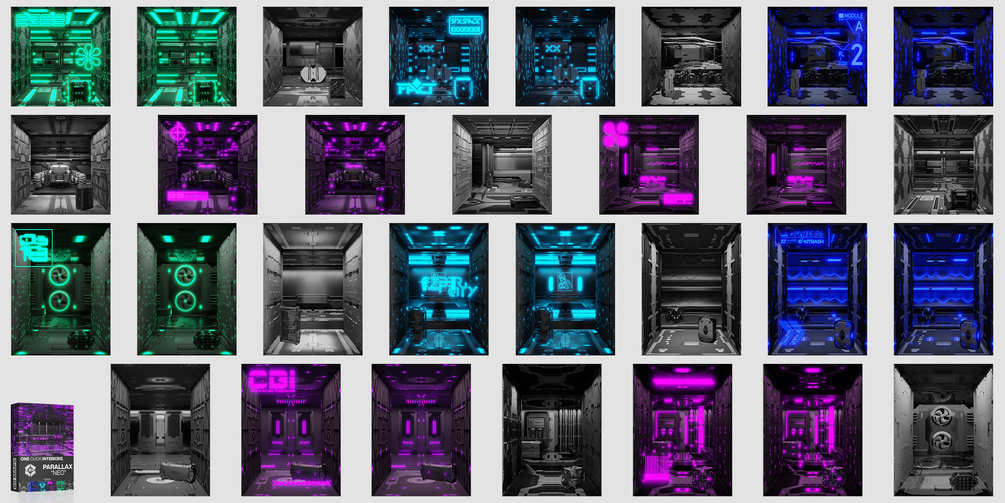 ! This PACK is a part of big collection - Sci Fi / Cyberpunk Parallax Rooms Library | One Click Interiors | Kpack !