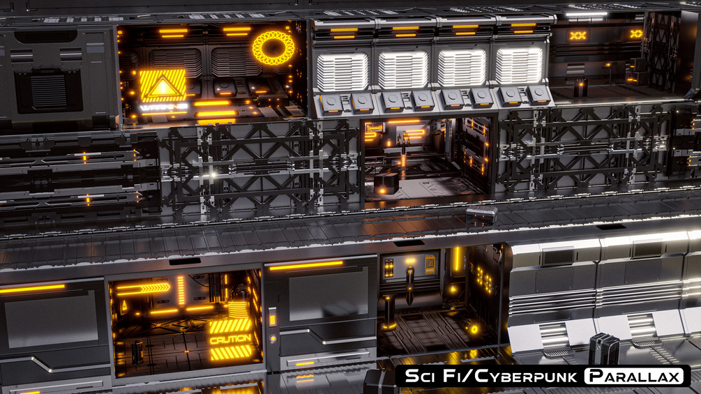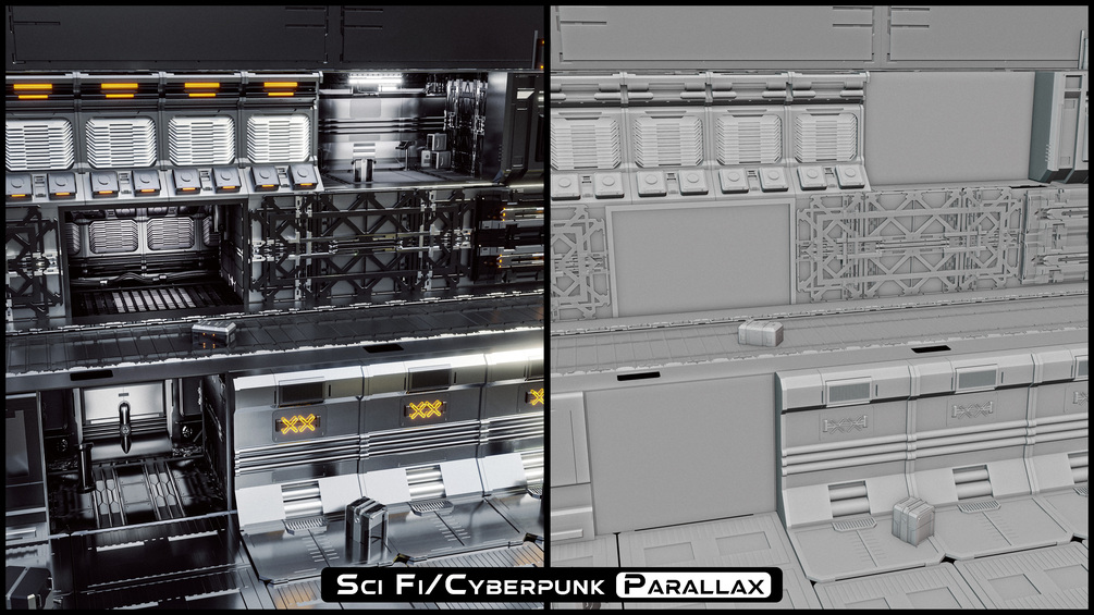 Sci Fi / Cyberpunk Parallax Rooms | One Click Interiors | Kpack